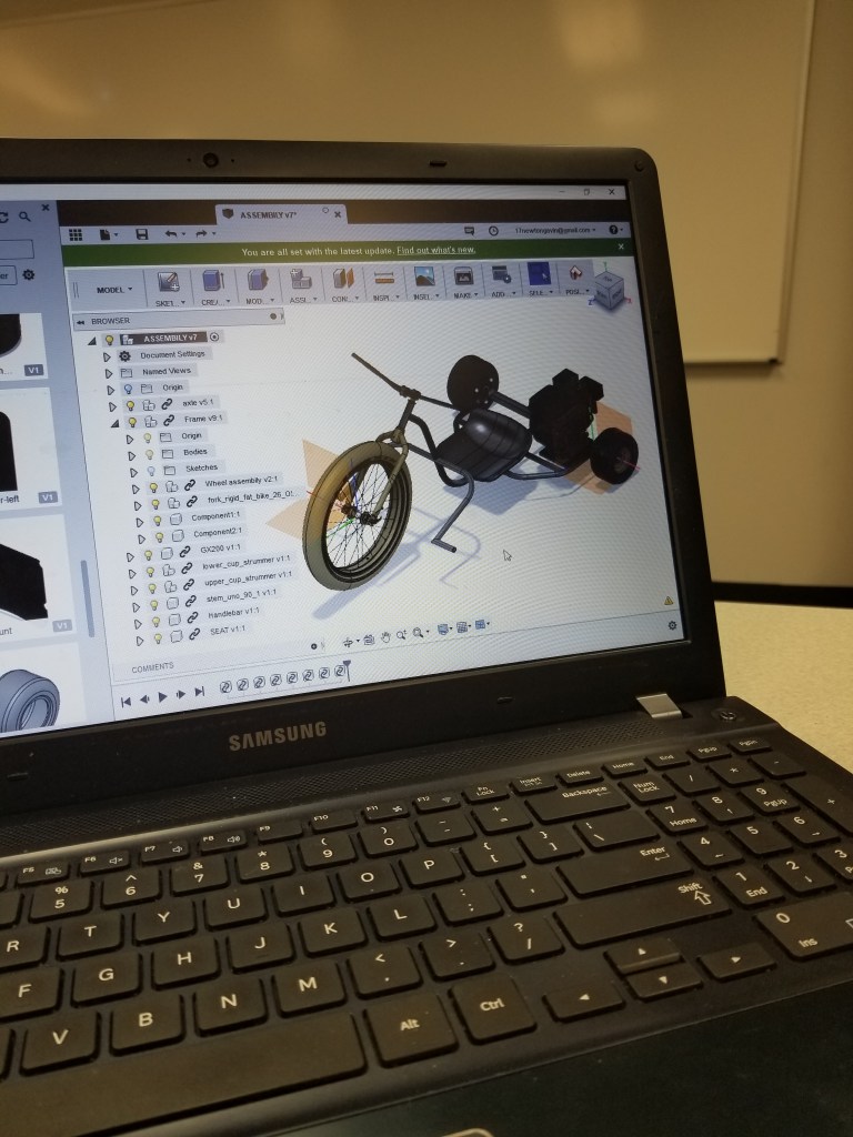 After getting the donor bike the design and fabrication process started. The first step was to disassemble and take a ton of measurements of the bike. From those measurements I created a 3d model.